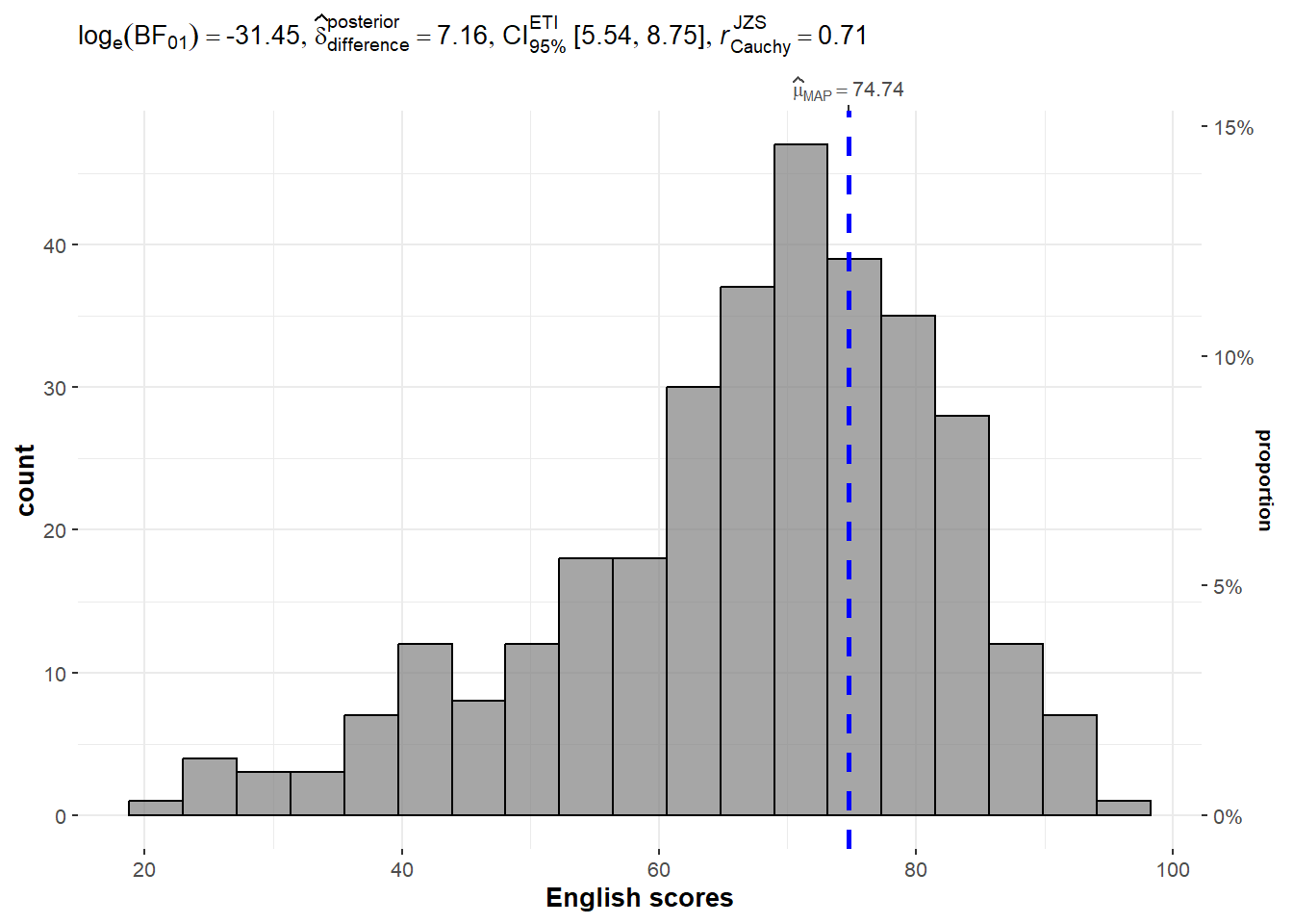 xlab = "English scores"