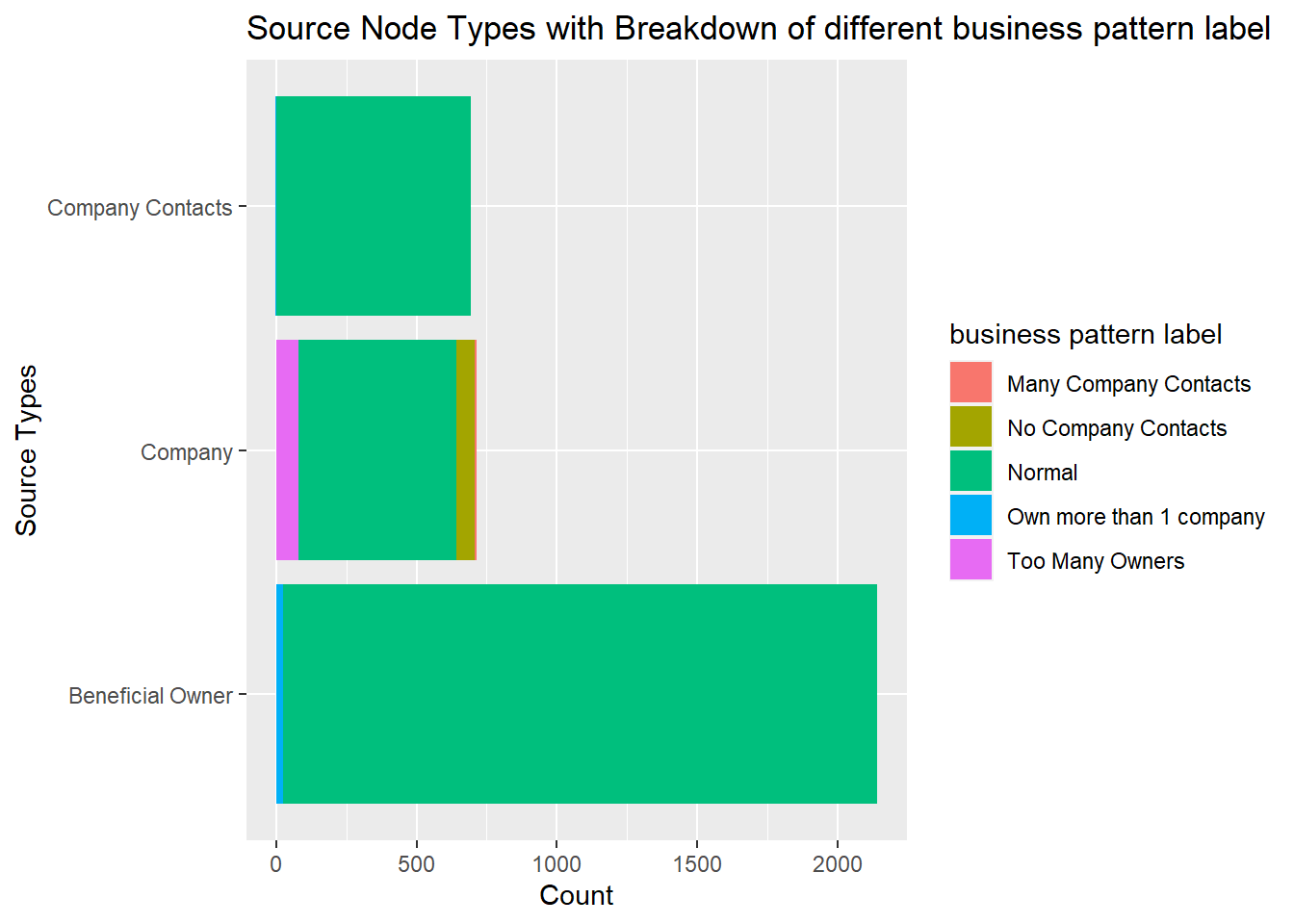 They are some observations of source type from benefit owner/company contacts to target type of benefit owner/company contacts. By right all sources should be company.As the number of none company source are lesser, consider exclude those are company contacts/beneficial owner type.